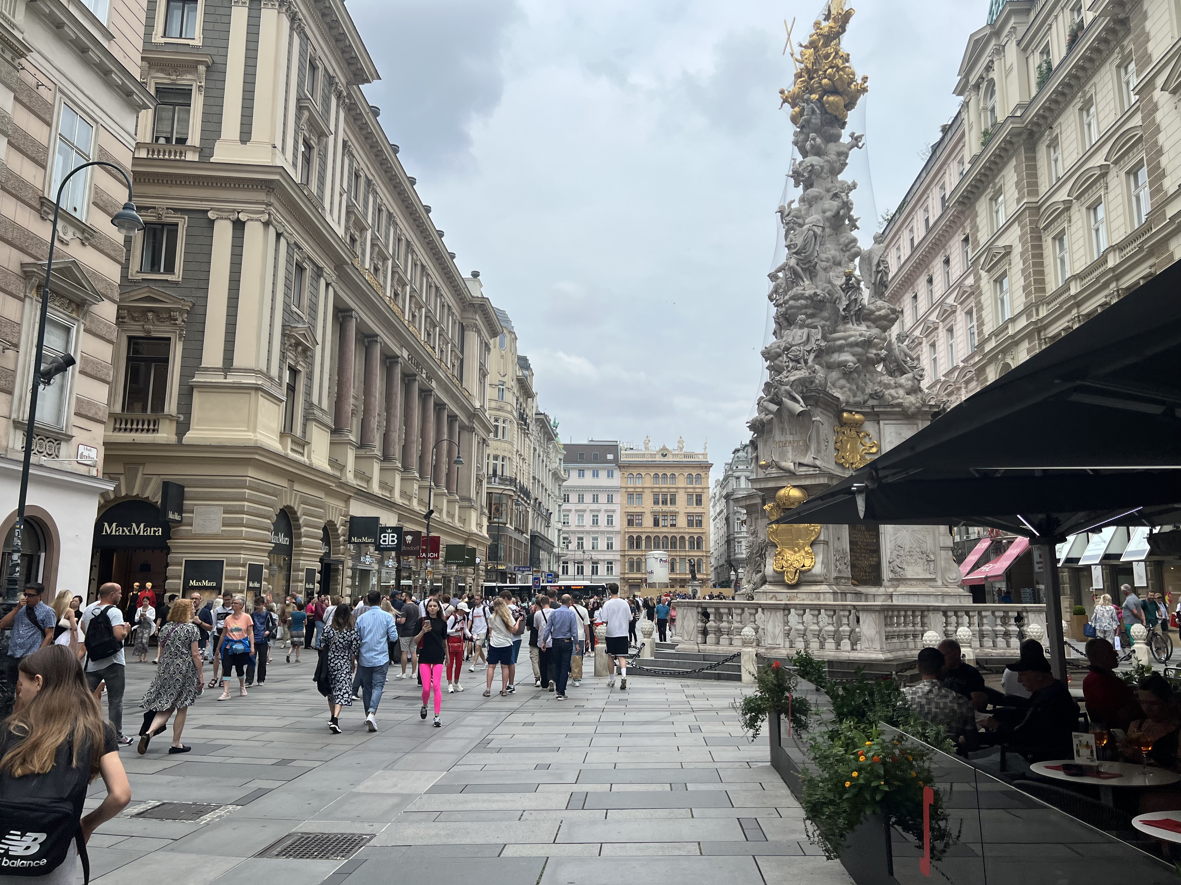 - Down toward the Opernring (Opera Quarter): We passed the Pestsäule — that towering plague column in the middle of the Graben — which looked somewhere between religious guilt and baroque fever dream. Dramatic, unclear, but impressive.