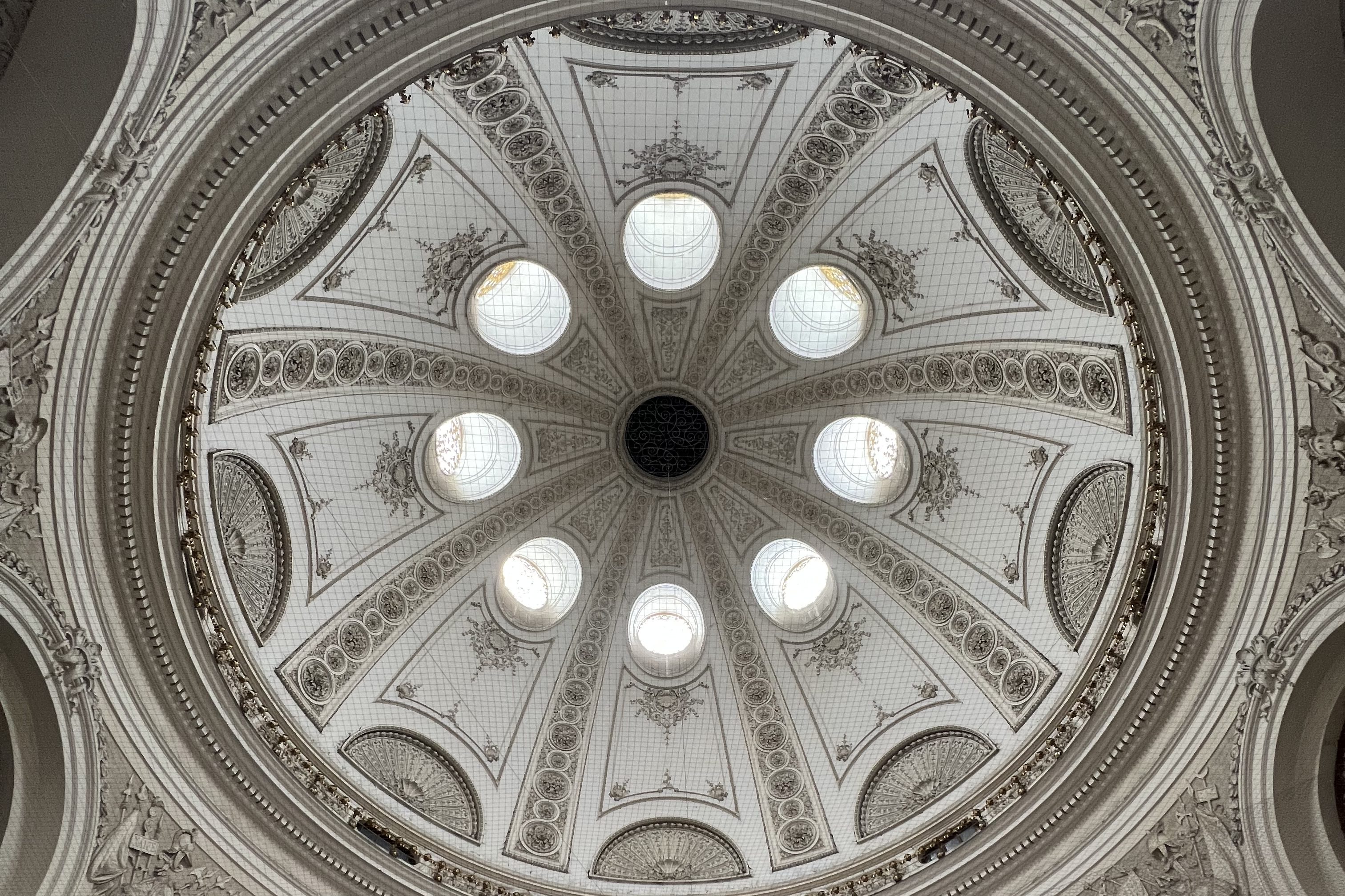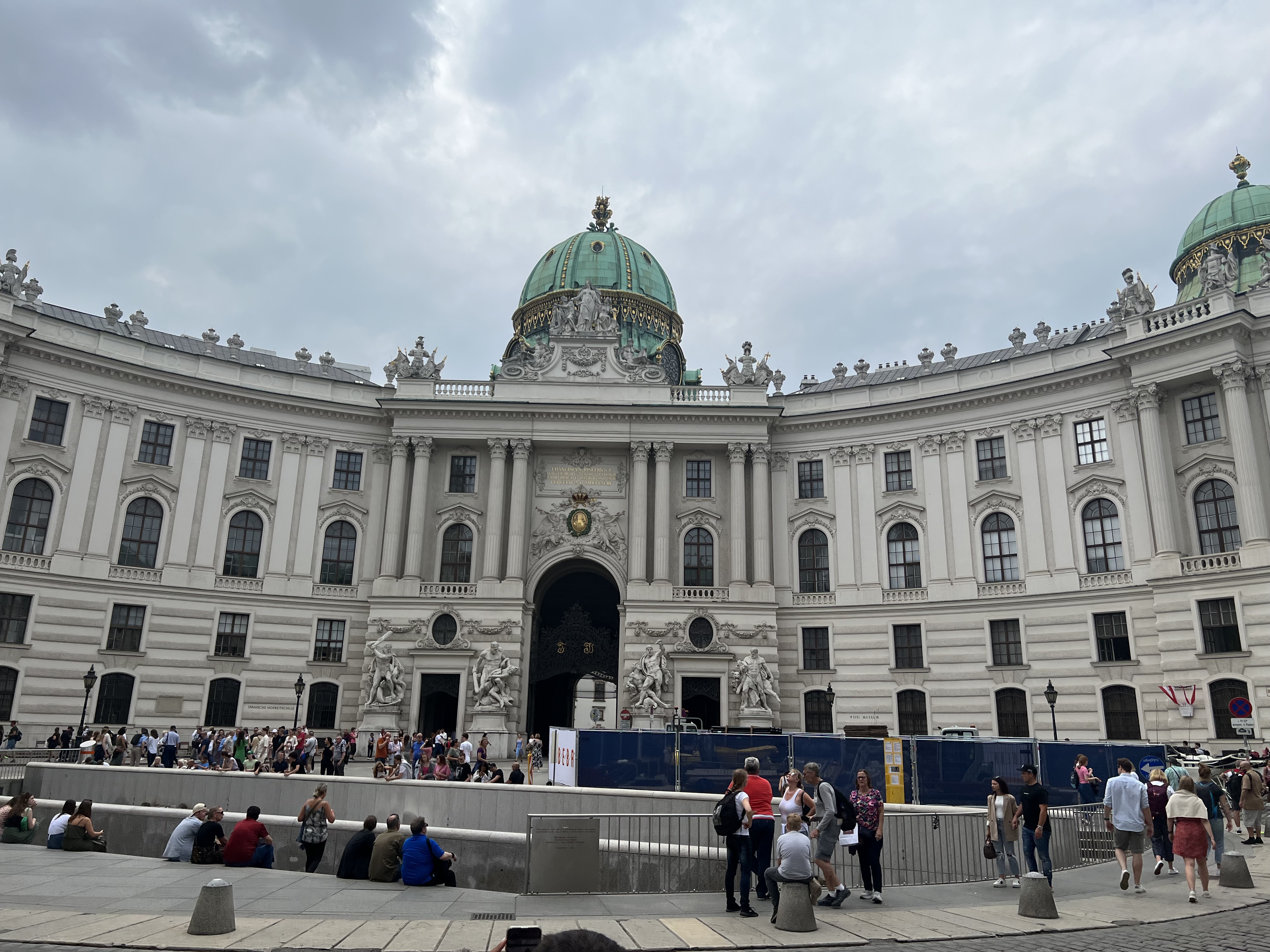 - Sisi Museum / Hofburg Domed Entrance: We continued into a roundabout with roman ruins in the center, horse-drawn carriages causing a traffic jam, and the Sisi Museum as the most dramatic backdrop. Into a grand domed corridor we went, underneath the Sisi Museum entrance of the Hofburg complex. The ceiling had elegant mosaics, the whole space echoed, and there was a lone statue dead center — a very imperial funnel into what felt like a private royal universe.