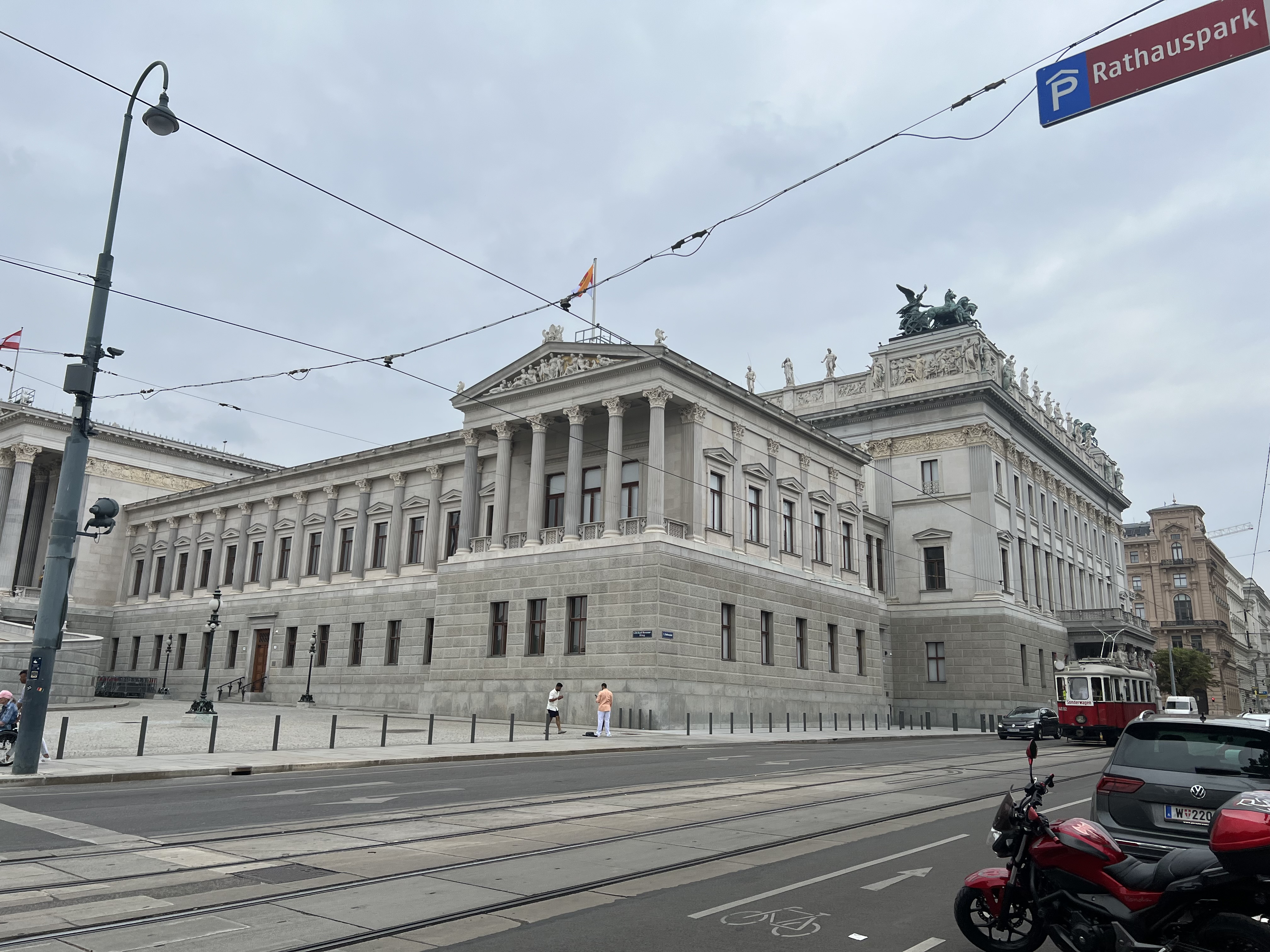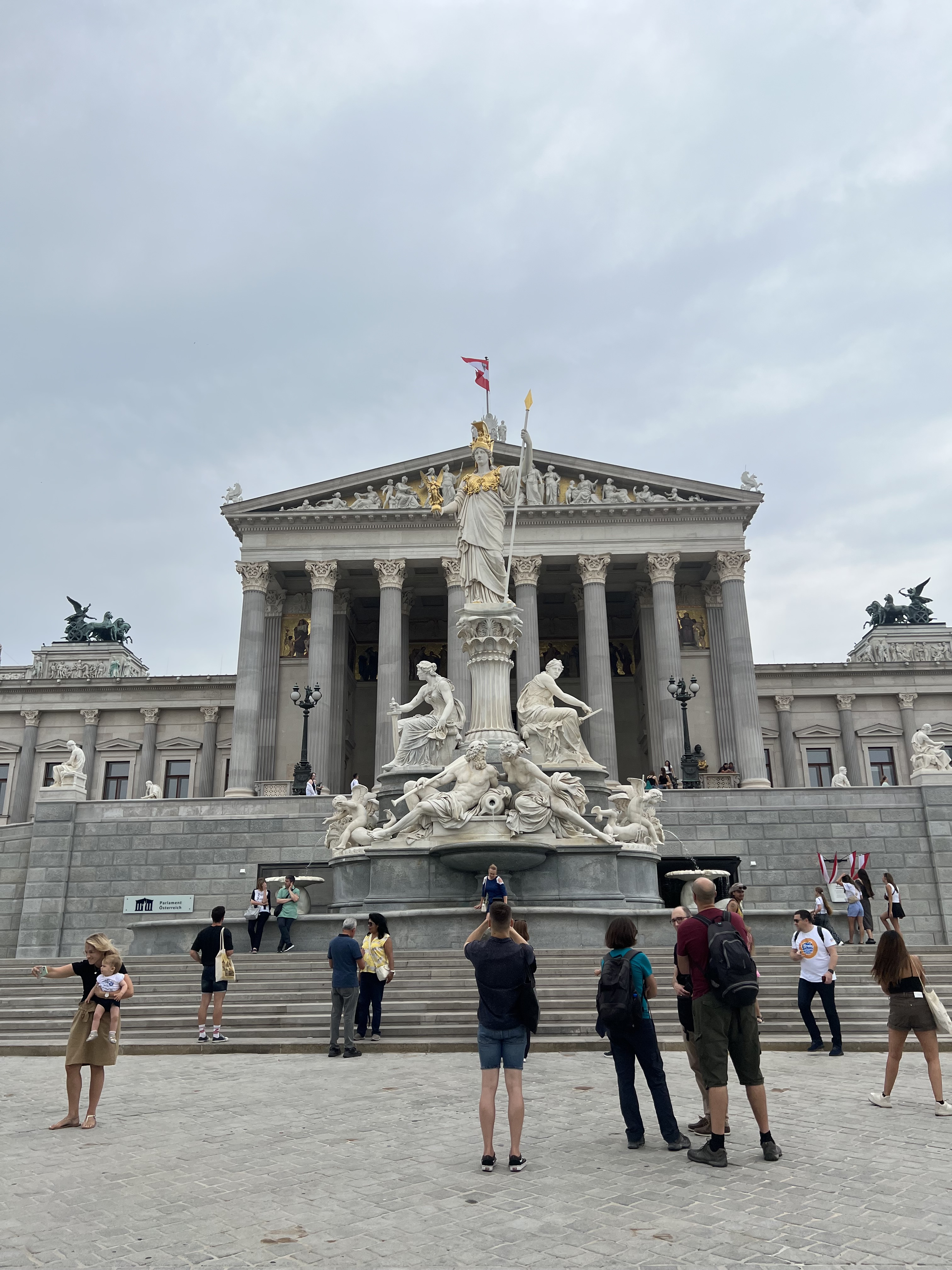 - Parliament & Courthouse: We looped north past the Austrian Parliament (pillars, statues, and gravitas), then past the Justizpalast (even more pillars, even more gravitas). Vienna really commits to its façades.