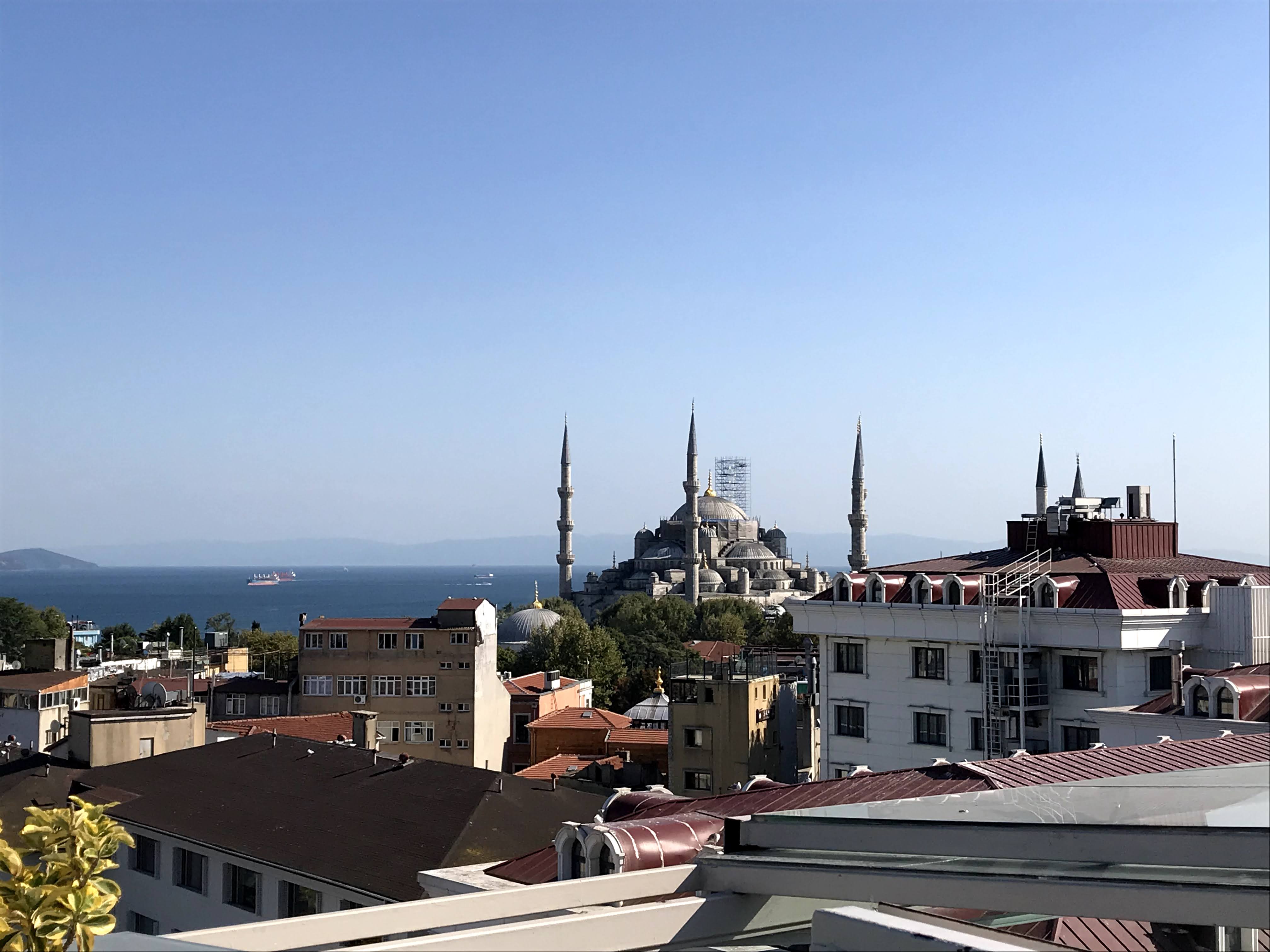 From this view you can see it all: Both grand mosques, the Topkapi Palace Museum, the Galata Tower, Maiden’s Tower, Dolmabahçe Palace, the Bosphorus Bridge and a sea of mosques, domes and skyscrapers.